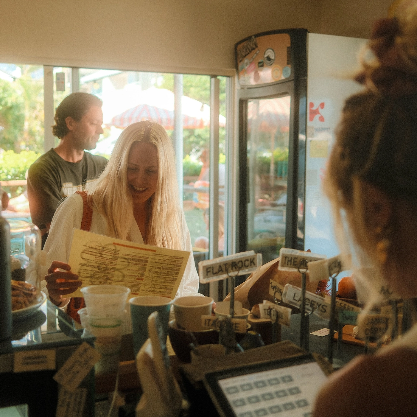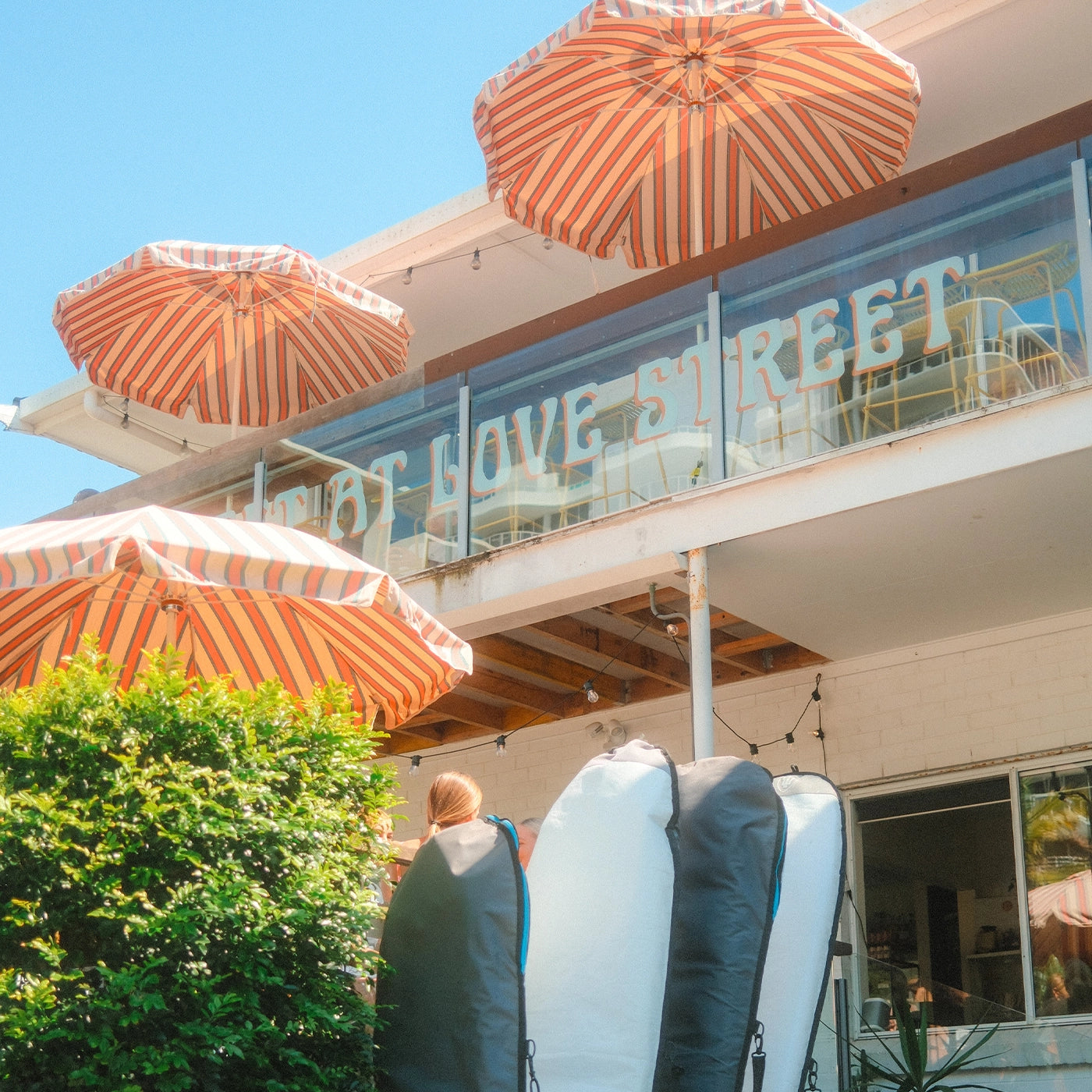 Tucked into beachside Kirra, Love Street is a creative’s dream — inspired by the ocean and made for connection. It’s where Laura grabs a post-surf coffee, catches up with friends, or just leans into the laid-back Kirra energy. Equal parts café, hangout, and hub, it’s a spot that reflects her Gold Coast lifestyle: simple, joyful, and always close to the sea.