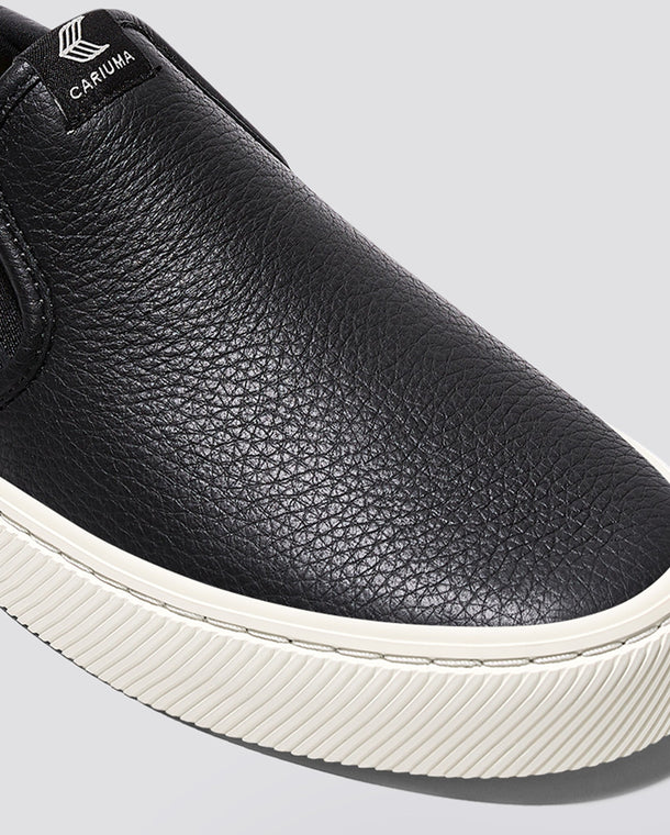 SLIP-ON ブラック プレミアムレザー スニーカー メンズ