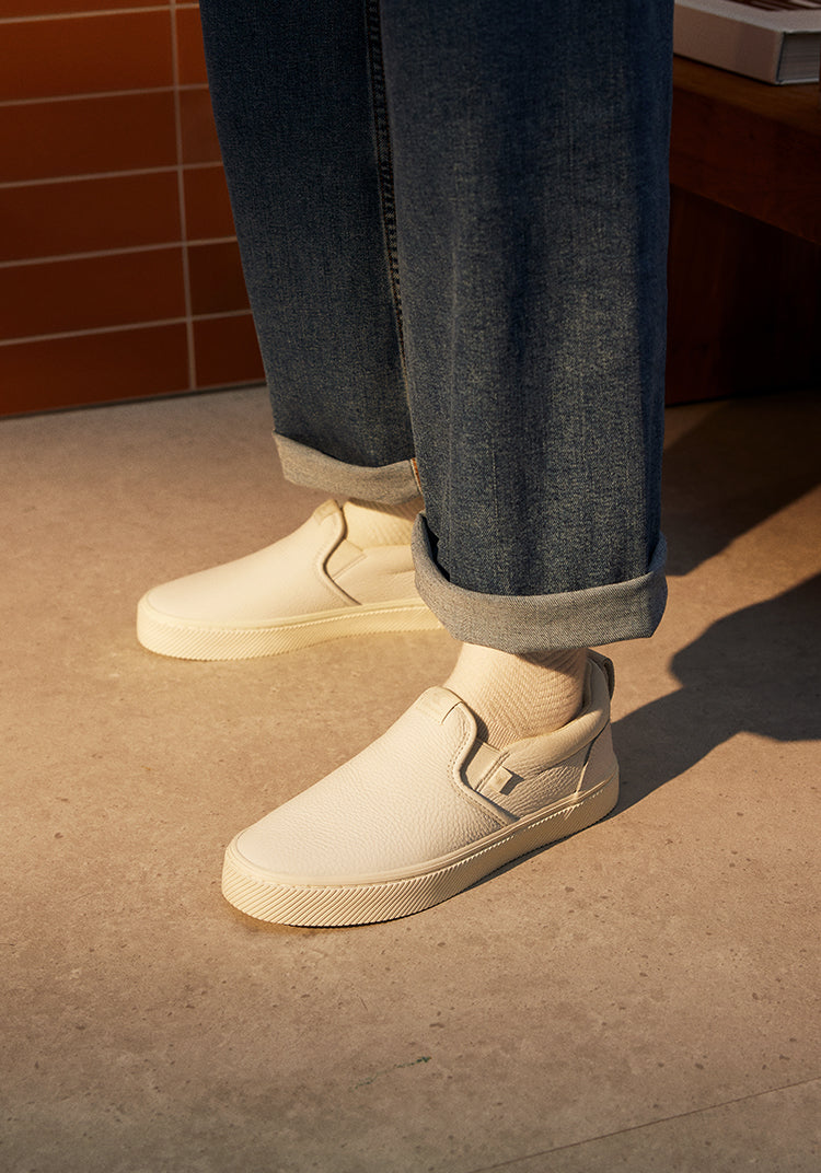 Shop the SLIP-ON ブラック プレミアムレザー スニーカー メンズ