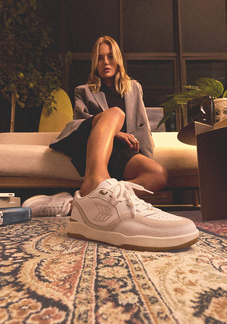 90年代のスケートボードとバスケットボールスタイルを融合させた、CARIUMA初のカップソールデザイン。際立つ個性的なスタイルを演出します。